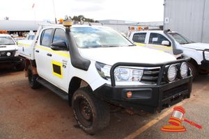 - 2018 TOYOTA HILUX 8 GEN DUAL CAB TRAY, WHITE, 4X4, AUTO, P/S, A/C, 2.8 DIESEL (REG# UNLIC) ODO# 211,096 KMS SHOWING ON CLOCK
