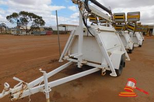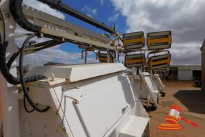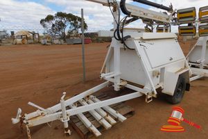 ALLIGHT MINE SPEC 8 HEAD LED LIGHTING TOWER, 2 CYLINDER DIESEL PERKINS, HYD LEGS, 1 X LEG REMOVED AND ON A-FRAME, DISC BRAKES, ISOLATOR, BATTERY MISSING.