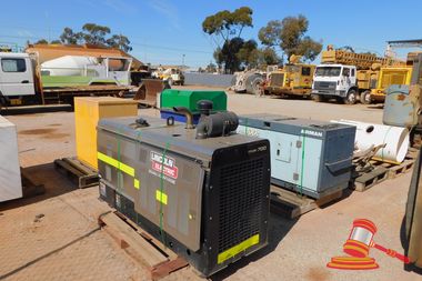ATLAS COPCO QAX60 GENSET 60KVA, RATED= 48KVA RATED ACTIVE POWER 3 X 32AMP 3 PHASE OUTLETS & 1 X SINGLE PHASE 15AMP OUTLET 4 CYLINDER TURBO DEUTZ DIESEL, STAMFORD ALTERNATOR, SERIAL NO - WUX610884, ODO - 27210HRS SHOWING, (A/NO- PE2371)