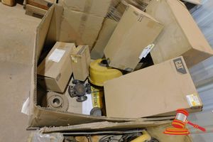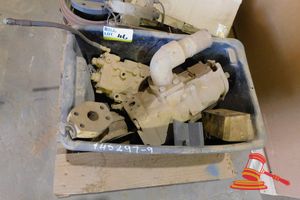 PALLET OF CATERPILLAR PARTS INCLUDING USED PUMPS VALVE BODIES, BRAKE ANCHORS, PISTONS & REACTION PLATES