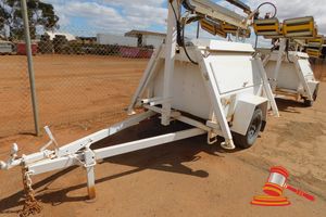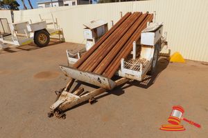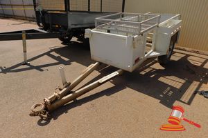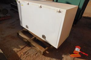 FIXED AXLE PLANT TRAILER, SIDE & FRONT STORAGE AREAS REAR TAILGATE, HEAVY DUTY ON LT235/85 TYRES, TRAILER NOT ENCLOSED WITH 910mm X 3130mm STORAGE AREA 600mm DEEP. PINTLE TOWING EYE, JOCKEY WHEEL DAMAGED U/S