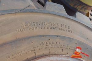 PALLET CONTAINING 1 X USED TYRE & RIM, 9 STUD WITH OTR 33x15.50-16.5 TYRE & 1 X NEW TYRE 8.25-15 MOUNTED ON 8 STUD STEEL RIM