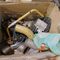 WOODEN CRATE CONTAINING VARIOUS CATERPILLAR PARTS INCLUDING PUMP, MOTORS, YOKES AND VALVES
