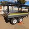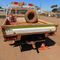 HEAVY DUTY SINGLE AXLE PLANT TRAILER ON 7.50 R16 TYRES FIXED AXLE MESH FLOOR SMALL TOOLBOX ON EACH GUARD CONTAINING 20 X USED DRILL RODS NO TOWING HITCH FITTED, JOCKEY WHEEL U/S, SURFACE RUST IN TOP OF MUDGUARDS. TUB 1800mm X 2150mm