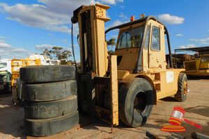 CATERPILLAR AM36 16 TONNE FORKLIFT INCLUDING 4 X SPARE TYRES 14.00 - 2400 WITH RIMS (*NOTE - NON MATCHING RIMS) (*NOTE - POS 4 ON MACHINE U/S, FLASHING LIGHT, WORK LIGHTS, PARK BRAKE AND SERVICE BRAKES NON - OPERATIONAL*)
