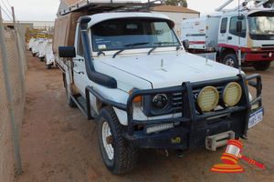 WHITE, 4X4, MANUAL, P/S, A/C, V8 DIESEL, ROOBAR, TOWBAR, LIGHTBAR, DUAL BATTERIES, SNORKEL, REDARC TOWING CONTROLLER LOCKABLE SPARE, TYRE RACK BUILT INTO TRAY, WORKLIGHTS, REVERSE ALARM, FLASHING LIGHT & TAIL LIGHTS MOUNTED ON HEADBOARD, REG NO - KBC17635 (LIC 31/7/2024) ODO - 314,120KMS SHOWING, ENGINE# 1VD0077148, VIN# JTELV71J000014510, (A/NO-MV538) (DR#5963)