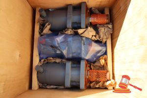 CRATE CONTAINING EMD SD70 LUBE OIL COOLER ASSY, (B8552105)