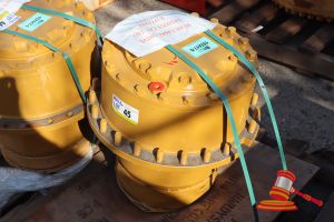 PALLET CONTAINING 1 CATERPILLAR HYDRAULIC ACCUMULATOR, CAT#465-7410 AND 2 x CATERPILLAR ACCUMULATORS, CAT#291-1546