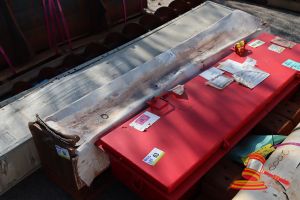 METAL CRATE WITH TYNE HOLES, CATERPILLAR, 793F STEERING CYLINDER, 271-2080, WESTRAC CODE 6239954X, 11264369, L1700 x W550 x H400