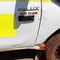 DENTS TO CAB, DRIVERS DOOR & FRONT QUARTERS, WEAR & TEAR TO PAINT, DRIVERS DOOR MIRROR MISSING, DOORS LOCKED, RHR TYRE FLAT