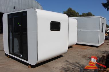 - MODULAR POD BUILDING, WINDOWS 1 x SLIDE DOOR, BATHROOM WITH SHOWER, BED