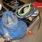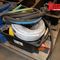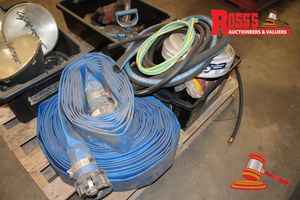 PLASTIC TUB CONTAINING VARIOUS HOSE/CONDUIT, CASTOR WHEEL WITH 2 X LENGTHS OF FLAT HOSE