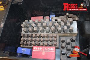 PLASTIC TUB CONTAINING QUANTITY OF METAL APHA NUMERIC STAMPS, VARIOUS SIZES