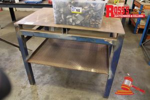 WORKBENCH, STEEL FRAME, STEEL TOP, 2 TIER WITH STEEL SHELF, APPROX 1200mm X 800mm X 990mm H