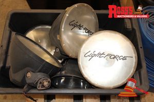 PLASTIC TUB CONTAINING QUANTITY OF SPOTLIGHTS