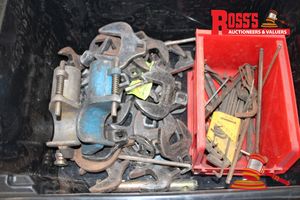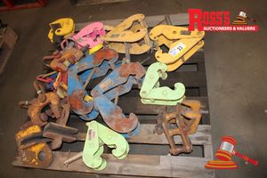 PLASTIC TUB CONTAINING QUANTITY OF VARIOUS PLATE AND GIRDER LIFTING CLAMPS