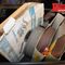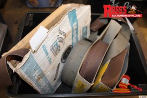 PLASTIC TUB CONTAINING PART ROLLS OF METAL CLOTH ABRASIVE ROLLS