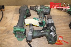 HITACHI CORDLESS POWER TOOL BUNDLE: 1 X DRILL, MODEL: DV18DL, NO BATTERY; 1 X DRILL, MODEL: DV 18DBL2, NO BATTERY; 1 X DISC GRINDER, MODEL: G18 DBAL, NO BATTERY. CONDITION: UNTESTED.