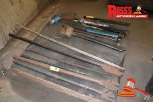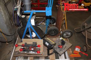 PALLET CONTAINING: MALLETS, BREAKER BAR, LEVER BENDERS, ADJUSTABLE TRIPOD STAND
