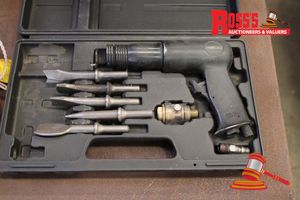 BUNDLE OF: 1 X MEDIUM AIR HAMMER AND CHISEL KIT, MAKE: TYPHOON TOOLS, IN CARRY CASE; AND 1 X REGULATED DC POWER SUPPLY, MAKE: GME, MODEL: PSA1210, CONDITION: UNTESTED.