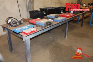 WORKBENCH, STEEL FRAME, 10mm STEEL TOP, APPROX 3920mm X 1015mm X 825mm H