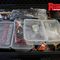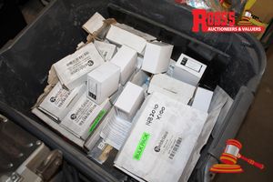 PLASTIC TUB CONTAINING QUANTITY OF CLEAR AND TINTED WELD LENSES AND FLURO NECK CAPS.