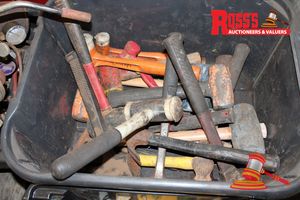 PLASTIC TUB CONTAINING QUANTITY OF HAMMERS AND MALLETS