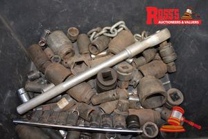 PLASTIC TUB CONTAINING QUANTITY OF IMPACT SOCKETS, WRENCH AND SOCKETS