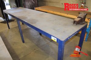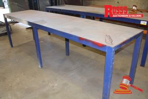 WORKBENCH, STEEL FRAME, STEEL TOP, APPROX 2930mm X 810mm X 765mm H