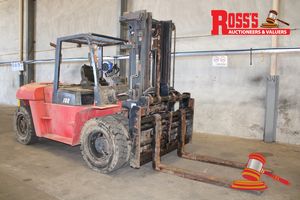 10T COUNTER BALANCE FORKLIFT, MAKE: HANGCHA, MODEL: GPCD100RW14, S/N: A3AG07262, DOM: 11/2017, HOURMETER: 1,412 HRS SHOWING, FUEL TYPE: DIESEL, 2 STAGE MAST, SIDE SHIFT, FORK POSITIONERS, SEAT DAMAGED (COMES WITH NEW REPLACEMENT SEAT)