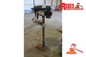 16MM PEDESTAL DRILL, MAKE: TRADEMASTER, MODEL: TD1316F, BELT DRIVE, ELECTRIC 240V PLUG, CONDITION: UNTESTED, NOTE: HEIGHT ADJUSTMENT HANDLE BROKEN.