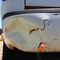 ROOF INTERIOR LINING STAINED, RUST/SURFACE RUST EVIDENCE TO TRAY, LH SIDE STEP DAMAGED, RHF PANEL DAMAGED, DRIVERS DOOR PINCHED, EVIDENCE OF SELASTIC REPAIR TO TOP OF WINDSCREEN, RHR DOOR DENTED, DENT TO LHR DOOR