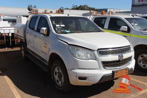 2013 HOLDEN COLORADO RG DUAL CAB TRAY, WHITE, 4 X 2, AUTO, P/S, A/C, 2.8 DIESEL, (REG# UNLICENSED) ODO# 117,233 KMS SHOWING