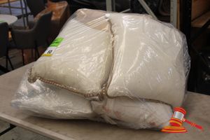 BUNDLE OF 2 x ASSORTED CUSHIONS, MULTIPLE AND THROW BLANKETS VARIOUS STYLES AND TEXTURES, (WHITE, BEIGE, BLUE)