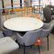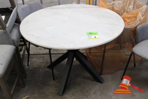ROUND DINING TABLE, MARBLE TOP, BLACK METAL LEGS