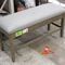 GREY POLYESTER BENCH WITH WOODEN LEGS AND STORAGE COMPARTMENT