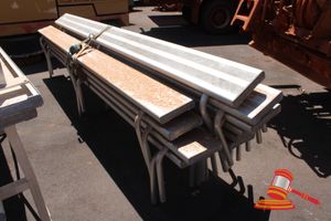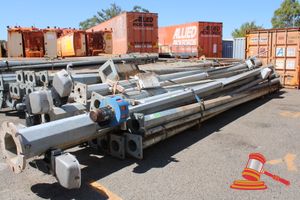 COMPRESSOR- CONVEYOR ROLLERS- BILLY GOAT VACCUM- MOWER HONDA- LIGHT POLES, 8000 mm LONG/ 6000mm LONG GALVANISED- SIREN POLES WITH DISTRIBUTION BOARD - GRANDSTAND SEATING ALUMINIUM- SEAT BENCHES - 8 X ALUMINIUM SINGLE ROW