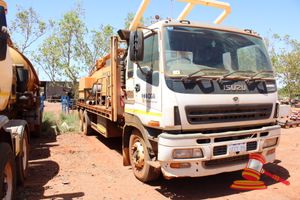 6x4, EATON FULLER MANUAL, REG NO - 1EEX 096 (LIC 17/7/2024) ODO - 445,240KMS SHOWING, ENGINE# 6WG1401608, VIN# JALEXY52K67000001, GVM-24000KG, 6 CYLINDER DIESEL (WHITE), A/C, POWER STEERING, TOW ASSEMBLY, ROPS, UNDER TRAY STORAGE BAYS, AIR BAG SUSPENSION, ISOLATOR, 7m CHECKER PLATE TRAY, (DGA048) INCLUDES VERMEER, VSK70-1200, VACUUM EXCAVATOR (SKID MOUNTED), SERIAL# S12H0130193293) ODO - 855HRS SHOWING (SK#779)