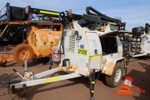 MODEL # 75M2400W-6LEDDX-CHN, SERIAL # SG14111185, HRS NOT SIGHTED, 6 x LED LIGHT HEADS, 4 x STABILISER LEGS, FIRE EXTINGUISHER, JOCKEY WHEEL, BEACON, SINGLE AXLE TRAILER, RUST EVIDENT TO TRAILER, BRAKE LINE REMOVED, ASSET # LT1373