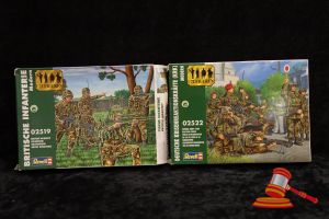 BUNDLE INCLUDING: 1/72 FIGURINE, BRITISH INFANTRY, CODE: 02519, MAKE: REVELL; 1/72 FIGURINE, GERMAN ARMY CRISIS REACTION FORCES, CODE: 02522, MAKE: REVELL. NOTE: 1 x BOX OPEN, UNKNOWN IF COMPLETE