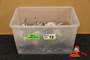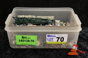 LARGE TUB CONTAINING QUANTITY OF ASSORTED FIGURINES AND PART MODELS.