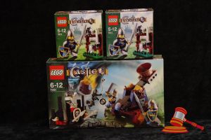 LEGO BUNDLE INCLUDING: 1 x CASTLE, CATAPULT DEFENSE SET, CODE: 7091, SEALED, AND 2 x CASTLE, THE KNIGHT SET, CODE: 5615, SEALED.