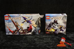 LEGO BUNDLE INCLUDING; VIKINGS, DOUBLE CATAPULT vs ARMOURED OFNIR DRAGON, CODE: 7021, SEALED; WITH LEGO, VIKINGS, VIKING WARRIOR CHALLENGES THE FENRIS WOLF, CODE: 7015, SEALED.