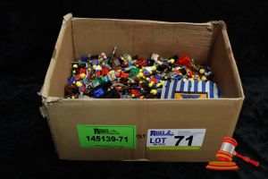 BOX CONTAINING QUANTITY OF LOOSE LEGO MINIFIGURES AND ACCESSORIES.