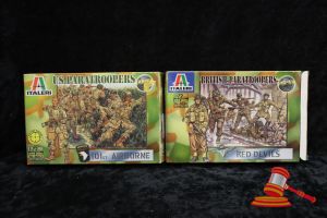 BUNDLE INCLUDING: 1/72 FIGURINE, WWII SERIES, US PARATROOPERS 101ST AIRBORNE, CODE: 6063, MAKE: ITALERI; 1/72 FIGURINE, WWII SERIES, BRITISH PARATROOPERS, RED DEVILS, CODE: 6034, MAKE: ATALERI. NOTE: BOXES OPEN, UNKNOWN IF COMPLETE