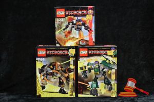 LEGO BUNDLE CONSISTING OF: 1 x EXOFORCE, UPLINK SET, CODE: 7708, SEALED; 1 x EXOFORCE, CYCLONE DEFENDER, CODE: 8100, SEALED; AND 1 x EXOFORCE, CLAW CRUSHER, CODE: 8101, SEALED.