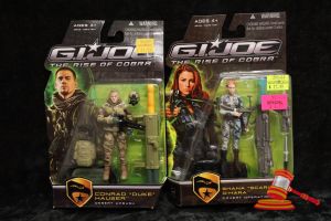 G.I. JOE, RISE OF THE COBRA FIGURINES, INCLUDING: 1 x CONRAD "DUKE" HAUSER, DESERT AMBUSH, SEALED; AND 1 x SHANA "SCARLETT" O'HARA, COVERT OPERATIONS, SEALED. MAKE: HASBRO
