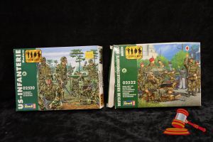 BUNDLE INCLUDING: 1/72 FIGURINE, US INFANTRY, CODE: 02520, MAKE: REVELL; 1/72 FIGURINE, GERMAN ARMY CRISIS REACTION FORCES, CODE: 02522, MAKE: REVELL. NOTE: BOXES OPEN, UNKNOWN IF COMPLETE