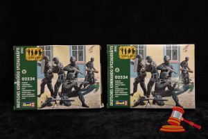 2 x 1/72 FIGURINES, GERMAN COMMANDO SPECIAL FORCES, CODE: 02524, MAKE: REVELL. NOTE: 1 x BOX OPEN, UNKNOWN IF COMPLETE