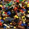 LARGE TUB CONTAINING QUANTITY OF ASSORTED LEGO PIECES AND BASES.